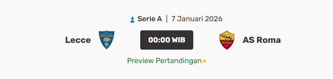 Pertandingan Lecce vs Roma pada pekan ke-19 Serie A 2025/2026 akan digelar di Stadion Ettore Giardiniero. Laga ini menjadi pertemuan penting bagi kedua tim yang sama-sama membutuhkan poin untuk menjaga posisi di klasemen. Roma datang dengan ambisi bangkit dari tren negatif, sementara Lecce ingin memperpanjang konsistensi mereka di kandang.