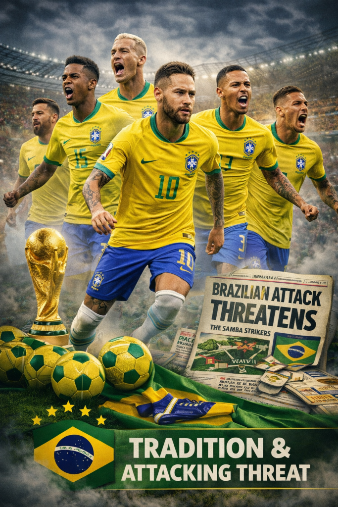 Brasil tetap jadi mesin gol klasik — kedalaman pemain sayap dan penyerang serta kreativitas lini tengah membuat mereka selalu berbahaya. Kekuatan Brasil adalah fleksibilitas taktik: mereka bisa menekan tinggi atau mengandalkan serangan balik cepat. Untuk mencapai final, Brasil harus menjaga ritme menyerang sambil menambal kelemahan pertahanan pada momen transisi. Di format 48 tim, Brasil harus berhati-hati terhadap kejutan dari tim-tim yang bermain kolektif dan disiplin taktis.